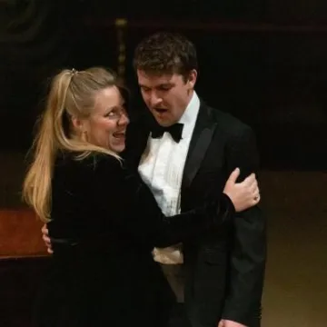 The evening was brought to a close with glasses charged for the uproarious drinking song from Traviata, which brought the audience to its feet with prolonged applause. Special applause also for piano accompanist Miles Lallemant, always there with unobtrusive support and warmly responsive to every change of mood.